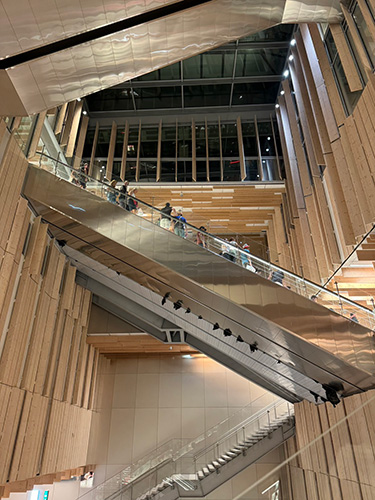 ▲こちらのメトロ14番線の最寄駅(オリンピックに合わせてできたばかり)は 日本人建築家・隈研吾さんの設計したもの。 近深い巨大な駅でまるでコンサートホールにきたような雰囲気の駅です。