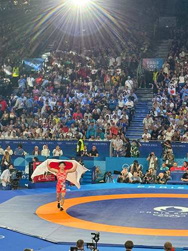▲同じく優勝した女子フリースタイル57キロ級櫻井つぐみ選手。