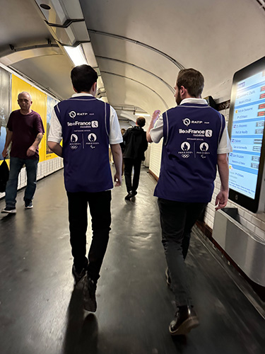▲パリのメトロにもこの紫のベストを着た係員の人が大量に投入されて 切符の買い方や乗り方をアドバイスしていたり観光客の混乱も全く見かけず。 メトロにもたくさんのポリスたちがいて、スリも一切見かけない いつもとは全く違う安全なパリのメトロなのでした。