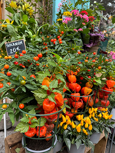 ▲今の季節、花屋の店頭にはオレンジ色に色づいたほおずきの姿が。 フランスでお花の仕事をしている友人に聞いてみたところ、 やっぱりほおずきはフランスでは秋冬のイメージだそうです。