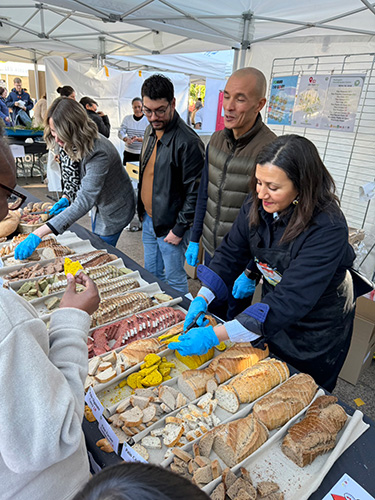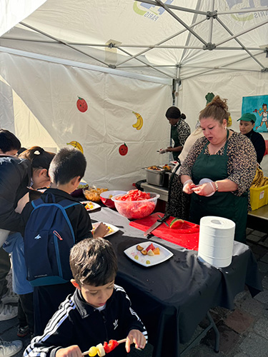 ▲区役所前の広場で行われた、学校の給食を紹介するイベント。 試食コーナーもたくさんあって、地元の住民たちで大盛り上がりでした。