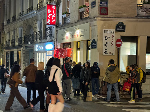 ▲パリのオペラ座地区にある日本食街。ラーメン、うどん、お好み焼き、 パン屋(日本風)、お弁当屋、アジア食材スーパーetc 数えきれないほどの日本食レストランが集まる場所。