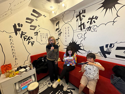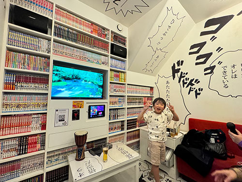 ▲私たちは「漫画」がテーマの部屋を予約。 この部屋だけに日本の「ジョイサウンド」システムが入っているので 日本語のカラオケができます。 逆にこの部屋以外は日本のカラオケシステムはなし。 つまりそれだけフランス人のお客さんが多いということでもあるのかな?!