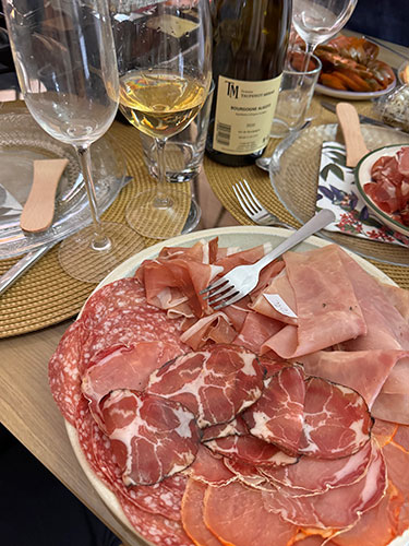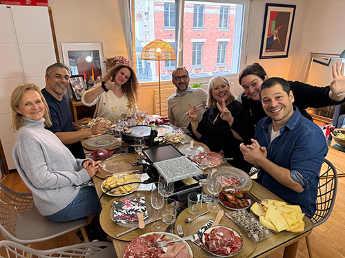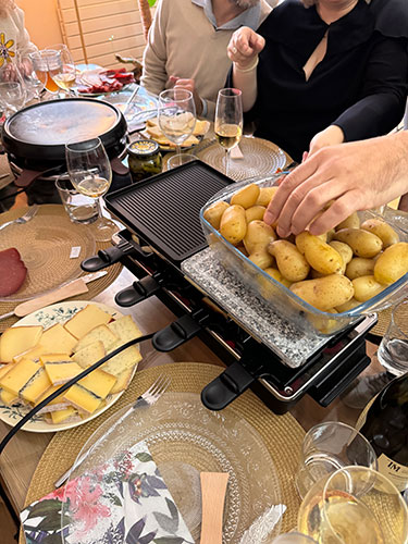 ▲フランスの冬の風物詩のひとつ「ラクレット」。 日本で言う鍋?! ハムやサラミ、じゃがいもにとろけたチーズをかけていただきます。 詳しくは以前のコラムもご覧ください♪