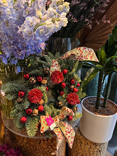▲クリスマスムード満点のパリの花屋さん。 この写真の下の方に写っているキャンドルが4本たつリースが宗教的な伝統的なリース。