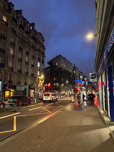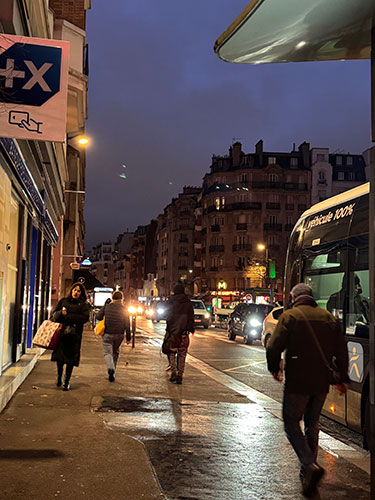 ▲8時過ぎの冬のパリ。 みんなこんな夜のような中を通勤・通学していきます。 朝から明るい冬の日本が恋しい!