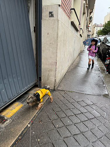 ▲今年の秋冬は雨が本当に多かったパリ‥‥。 バブーのお散歩もタイミングを見計らうのが大変! ちょっと小降りになった時を狙って‥‥。