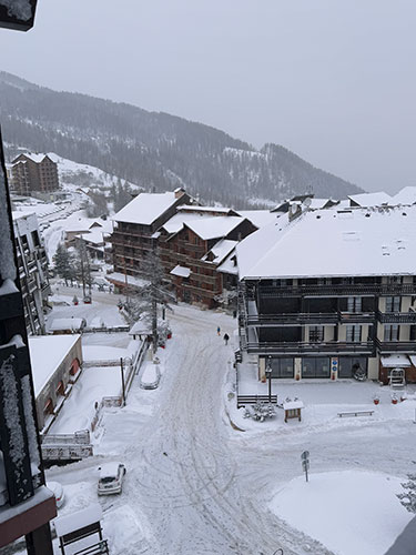 「まりこはパリから悪いお天気を連れてきて 太陽を追いやってしまったのか?!」 なんて到着と同時に雪山で再会した人たちに 言われるほど、最初の2日は 吹雪だったスキー場ですが、 雨が多かったパリからやってきた バブーも息子も雪に大喜び。 雪の中を元気に走りまわって遊んでいます。