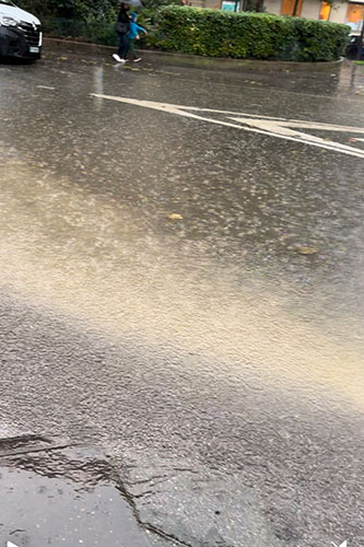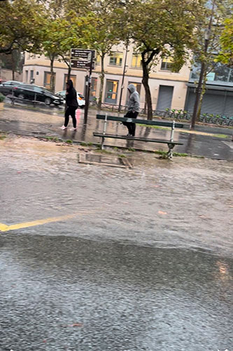▲「牛のおしっこ」のような土砂降りも多かったパリ。 ちょっと降り出すと道路がこんなに洪水のようになってしまって 学校帰りに道路を渡れなくて困る日が何回かありました。