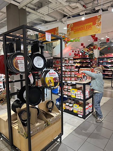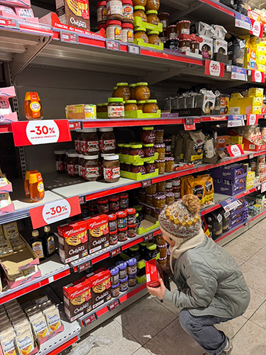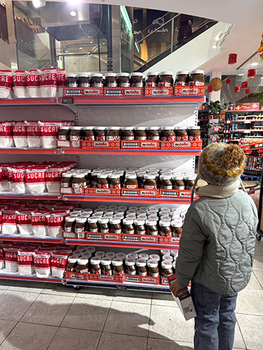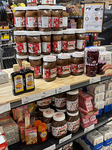 とりわけ珍しいものではないけれど、 とにかく2月2日に向けては これでもかというほどクレープ関連のものが スーパーに大量に並びます。 粉・砂糖・クレープ用フライパン・ジャム・ チョコスプレッド・ハチミツetc.