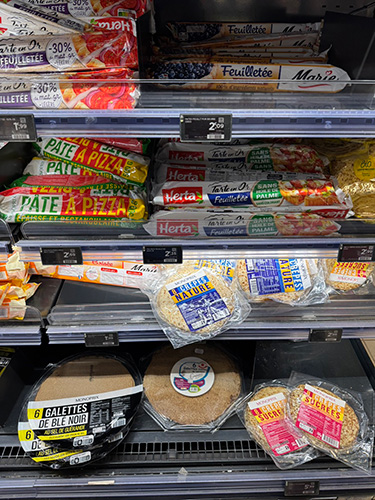フランスでは普段から ガレット(そば粉の食事系クレープ)や いわゆる私たち日本人が想像する クレープ(小麦粉で作るおやつクレープ)が とても身近。 街角やマルシェにはスタンドもあるし、 パン屋さんにも焼いたクレープが 1枚単位で売られていて、 子どもたちのおやつになるし、 スーパーにも温めればいいだけの クレープやガレットがたくさん並んでいるし。 レストランも、たくさん!