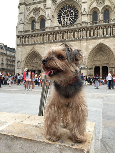 ▲これは2015年のパリ。1代目のバブーです。 かつては(テロが起こる以前)、いろいろな規則が緩くて、 イヌもカバンに入っていたら教会の中に入れることがほとんどでしたが、 テロ以降、荷物検査も強化され、ゆるゆるだった規則もガッツリ厳しくなりました。