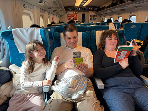 ▲こちらは2月にフランス人ファミリーと新幹線で旅をした時のもの。 東京駅に到着した途端、車内清掃で座席の方向を全部変えていてびっくり! そして座席がくるっと回せてみんなで向き合えることにびっくり! 大盛り上がりのフランス人たちでした♪