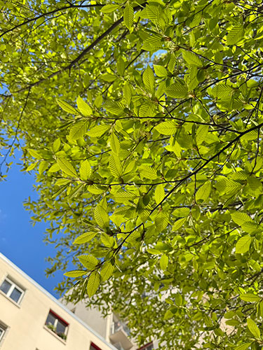 ▲太陽の光と新緑が美しくてわくわくする今の季節。 まだまだ朝晩は冷えることも多いけれど、 夏時間に変わってから急激に春への突入スピードがマックスに!