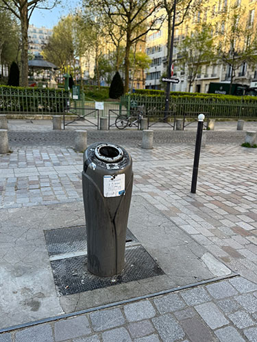 ▲こちらは同じ瓶専用ゴミ箱でも、地中埋め込まれタイプ。 これだと景観的に邪魔にならないのでこっちの方が嬉しかったり。 これも引っ掛けて持ち上げて下からザザーっと回収します。