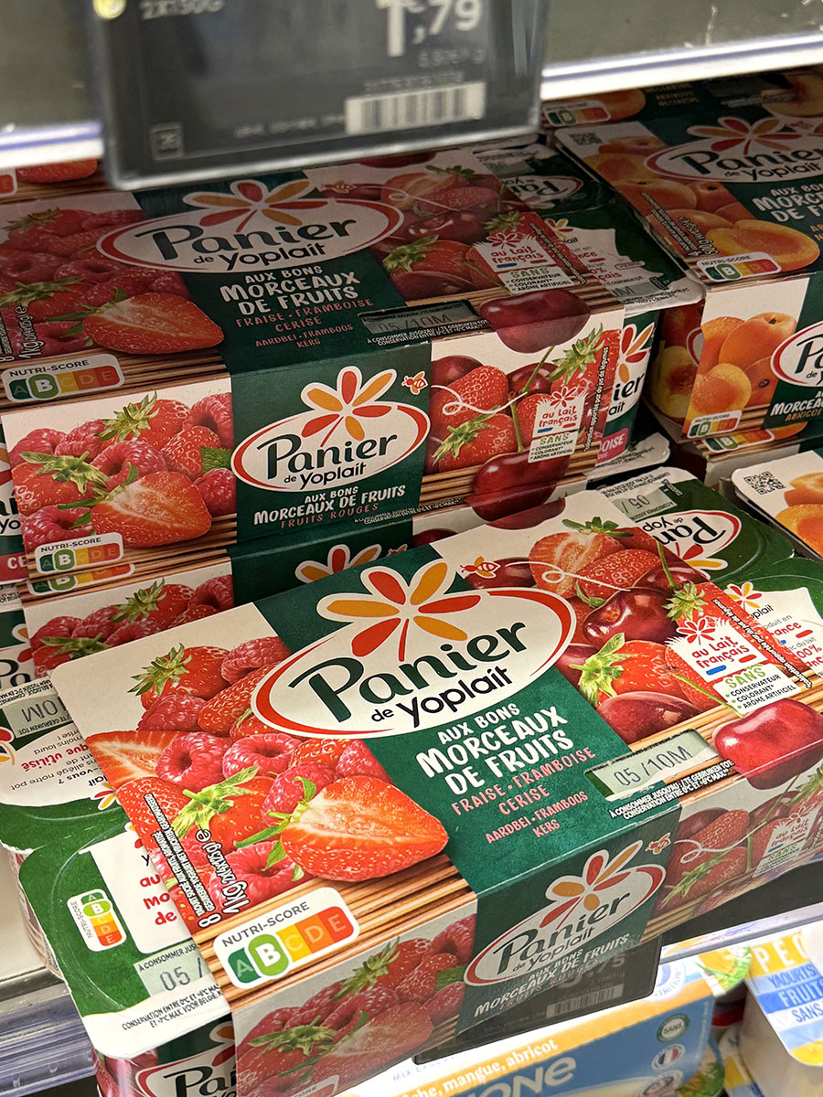 フランスのスーパーのヨーグルト売り場。 フルーツ味がやっぱりメジャー。