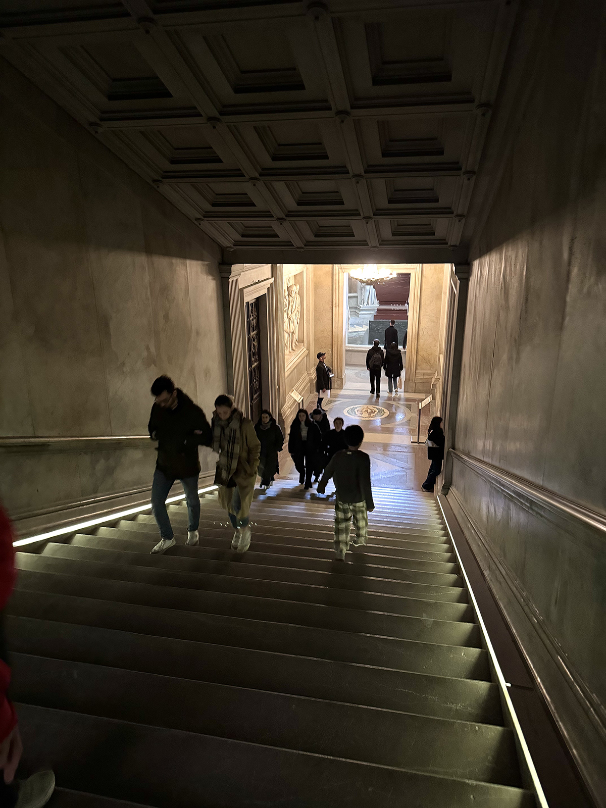 うすぐら~いこの階段を降りると、棺を間近でみることができるよ