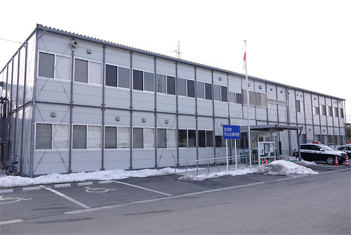 気仙沼市赤岩の高台にある、気仙沼警察署の仮設庁舎。