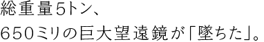 650ミリの巨大望遠鏡が「墜ちた」。