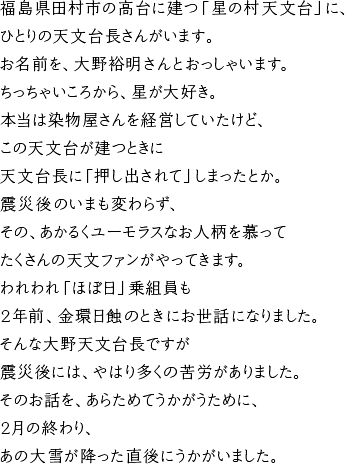 なんとも大野天文台長らしいエピソードです。