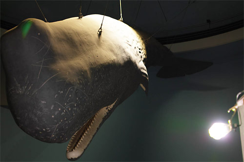 ダイオウイカと格闘した傷跡まで、正確に再現された模型。高い位置にあるため、これは無事だった。