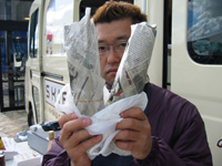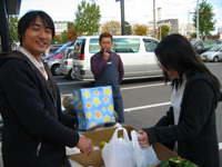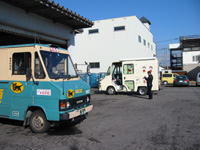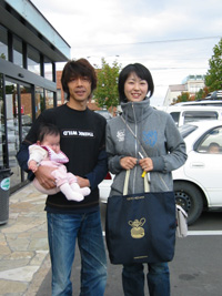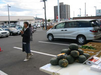| おはようございます! 朝10時、旭川「豊岡タウンプラザ」のユニクロ駐車場にて SKIPトラックストア、本日もオープンしました〜! というわけで、野菜を売るイズミてんちょーのサポートは 一昨日に引き続きアッキィ画伯と、 昨日に引き続きROCK西本、 そして朝一番の飛行機でやってきた 徹夜明けのシェフ武井でございます。 頼りないこと。すまん。 こんな景色が広がってます。 富良野だって! 近いんだね〜! しかし寒い。朝、4度だって。東京の真冬の極寒なみ。 さいわい、昨晩から降り続いた雨は朝には上がって ちょこっと水たまりはあるものの、「晴れ」です。 でも時々曇ると、すごく寒い。太陽はありがたいっす。 SKIPの野菜やくだものも、太陽あってのおいしさだもんなあ。 実感。