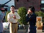 16:10 | ここで、永田先生が ご自宅へおかえりになります。 なぜか、ほぼ日ではやっている 「万歳三唱」にてお別れです。 「どうだ、恥ずかしいだろ!」 と、darlingが叫びます。 |