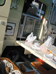 なんと、荷物の山に埋もれた トマトジュースを発掘! おおおおおおーーーっ、 これはうれしいプレゼント(?)だぁ!! |