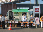 | 15:30 | 発掘されたトマトジュース、 タワーのように積んで アピールざんす。 試飲をしていただくと、 百発89中くらいします。 |
