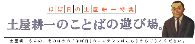 土屋耕一さんの、 そのほかの「ほぼ日」のコンテンツは こちらからごらんください。ほぼ日の土屋耕一特集 土屋耕一のことばの遊び場。