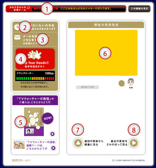 現在の荒井先生の様子がここに表示されます。 要するに、ここがリアルタイムで変わっていくのが テキスト中継と呼ばれるものです。 |