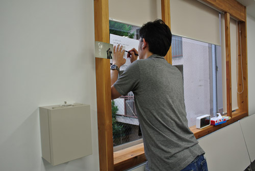 ▲絵をあきらめて字を書いている。