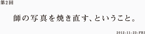 | ── | でも、「写真の粒子の調子」とか そこまでミクロな部分に 「師匠」の痕跡を感じることができるって‥‥ 「師弟関係」とは 何というか、そういうものなんですね。 |