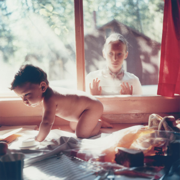 | ── | 窓の外から息子のコーエンくんを見守る、 奥様のジェシカさん。 |