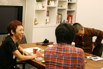 | ホットプレートでお好み焼きもやったし、 「ステーキをやろう!」とステーキを焼いたら、 ブレーカーが落ちちゃいました。 ほかの編集室の電気も落ちちゃったりして、 もう大謝りしましたけどね。 |