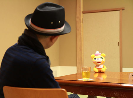 | (ちょこんと置かれたぬいぐるみを見て) 羽海野さんの、これ、いいなぁ。 俺もこういうのを作っときたいなぁ(笑)。 サイン会とかもこの人にも書いてもらって。 |