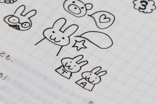 | そうそうそうそう! わたし、逆に、 今の学生さんたちが描いたのを見て 真似るようにしてるんですよ。 でないとどんどん古い絵になってっちゃうので。 こういうちっちゃいマーク的なものになると 学生さんのがうまく描けるくらいなんです。 それは、書き慣れてるし、 友だちと競争もするから。 わたしはそれが専門じゃないから、 やっぱり競争社会にいる人には勝てない。 |