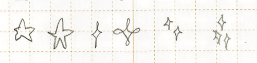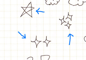 | ちなみに、星やハートにも 流行りがあるんですよ。 今、ちょっと縦に細長っぽいです。 みんなが描いてる星やハートって。 たとえば縦に長くなった時代とか、 いろいろありましたよ。 |