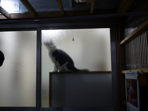 入り口のドアの窓に、牛が、来た。
