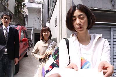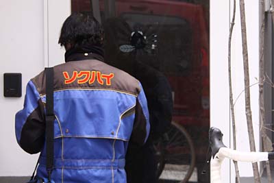 「ねぇ、すでにバイク便のお兄さんがいるよ」