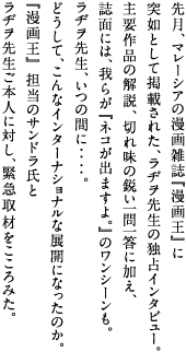 漫画家等の独占インタビューも掲載している。