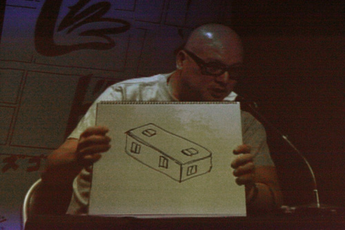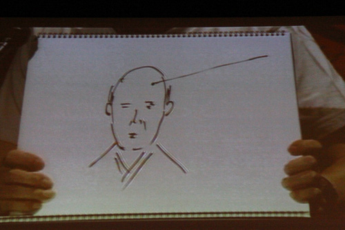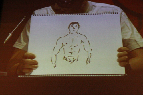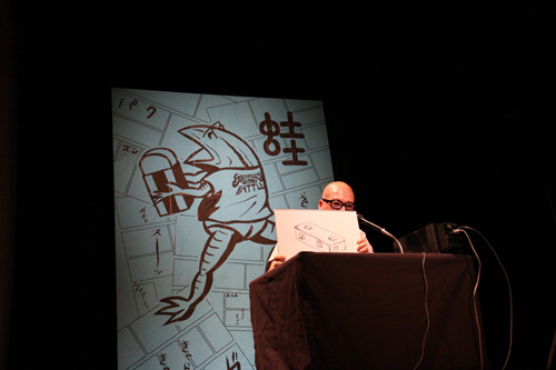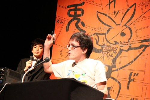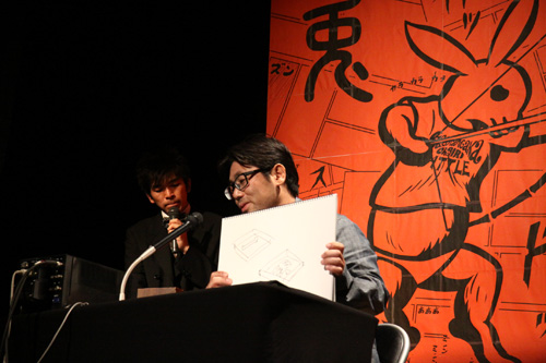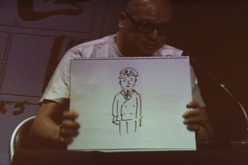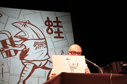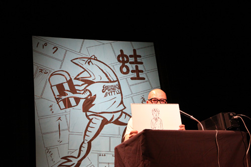 そのお手並みをじっと見つめるのは、大会の初代審査委員長・寺田克也氏だ。 |