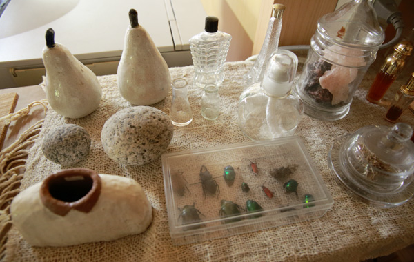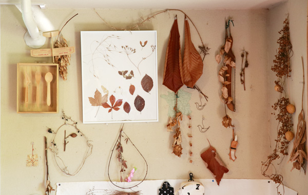 ![]() ▲拾ってきたものも多いという、部屋のなかの飾り。手づくりのものもたくさん。 |