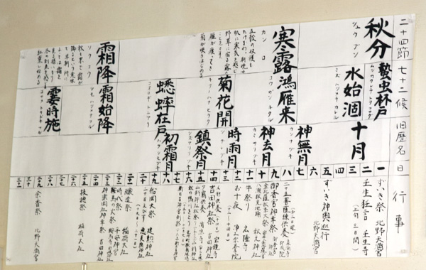 ![]() ▲自宅の作業スペースの横に貼られた手描きの暦。 おなじものが、SOU・SOUにも飾られている。 |