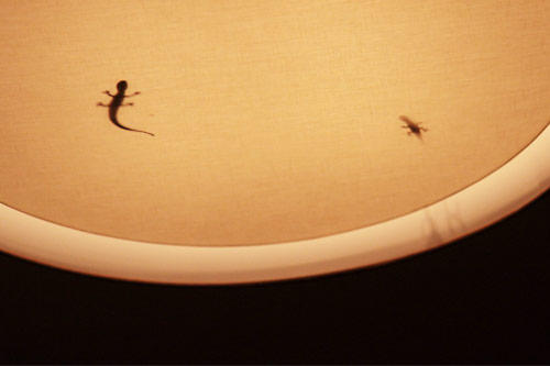 | ── | 電灯のところに おもちゃのやもりがいるんですよ。 |