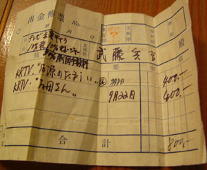 通行人で最初に出たのは、 昭和三三年かな? (石坂さんが十七歳ぐらいの頃) これ、こんなものが残っているんだけど、 KRTVってなってる。 これはTBSの前身ですね。 ![]() 通行人、四〇〇円とギャラが書いてある。 |
