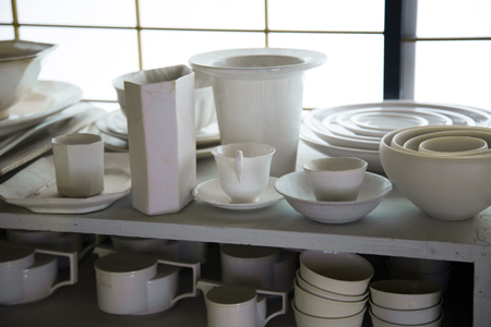 | 岡田 | はい、それと、食器の価格をおさえるためにも、 できるかぎりシンプルな技法でいこうと思ったんですよ。 うつわをつくって自分の生活を成り立たせるという リアリティーとして、 安定して量産できるパターンを考えたかったんです。 次から次へと技法を試して、 焼きかたを変えて、ということをしていくと、 それだけでコストを上げてしまうし、 できあがったうつわは、使ってもらうための食器には 不釣り合いな価格になってしまいます。 そういう仕事は、おそらく浮き沈みも激しいでしょう。 だから、シンプルに電気窯で、 食器が量産できる体制をつくりたかったんです。 たとえば薪窯だけでやると、 そば猪口ひとつが何万円の世界になるかもしれない。 けれどもぼくはそれを2000円台で つくりたいと思うんです。 |