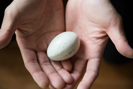 | 岡田 | これもフランスのアンティークです。 鶏に卵を産ませるために、 巣にわざと置いておくものなんですよ。 |