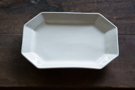 | 岡田 | これはフランスの磁器なんです。 使いやすくて、壊れなくて、 なんでも受け止める皿で、かっこいいんです。 |