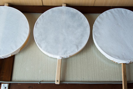 | 嘉戸 | 紙の強度を上げるため。 要は和紙をそのままべっと張るのと、 胡粉で1回染めた和紙を張るのとでは もちが全然違います。 日焼け具合とか、 そして防虫作用があるんで、虫に食われにくい。 |